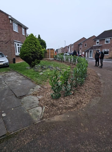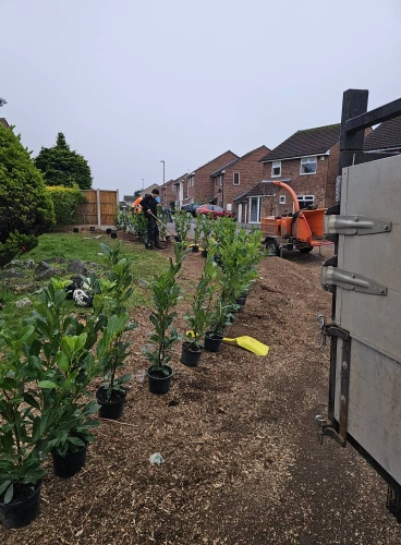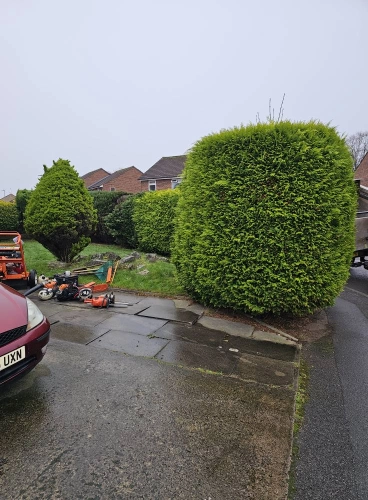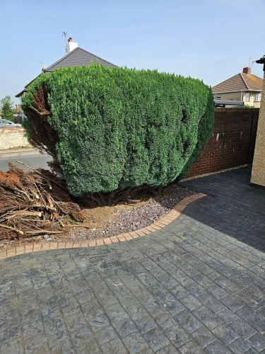 We removed a conifer and existing hedge before replanting with laurel, giving the customer a fresh, ...