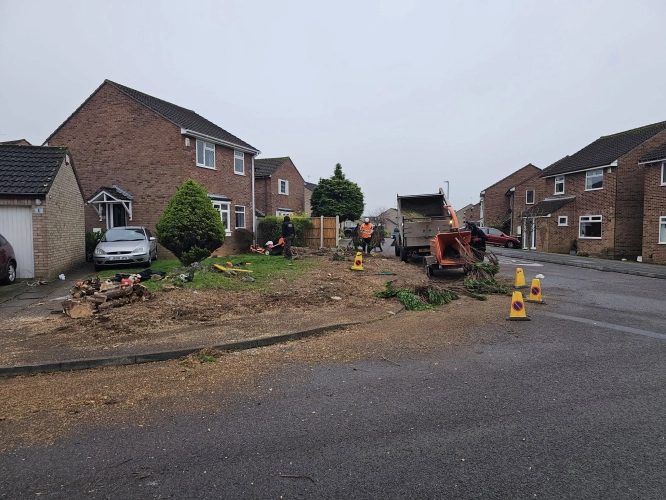 We sectioned and dismantled a dead tree that had become unsafe, ensuring the area was made safe and ...